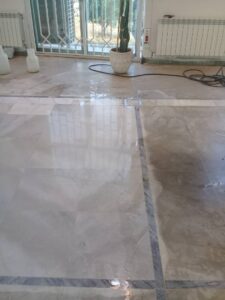 کفسابی یعنی لایه رویی سنگ را صیقل دهیم. این کار سنگ ها را هم تراز ،یک دست و براق میکند. می توانیم درز ها و ترک ها و شکستگی های سنگ را هم با رزین پرکنیم. بعد با لقمه های کاملا ایتالیایی ساب پرداختی انجام دهیم. یعنی سنگ را با دستگاه بسابیم . که با این پرداخت سنگ صاف تر براق تر میشود. سنگسابی برای هر جایی که کف آن، سنگ کاری شده نیاز است.